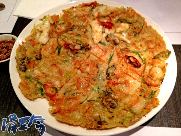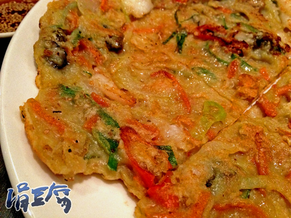 海鮮餅。記得幾年前的韓式煎餅都是走厚厚路線,又厚又油,我很不欣賞,所以我比較喜歡吃薄薄酥酥的月亮蝦餅;但不知曾幾何時,韓式煎餅都變薄了,反而月亮蝦餅都變厚了…