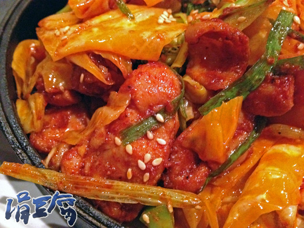 很香的韓國辣椒的香氣,辣度也夠,真的是香辣刺激。雞肉外酥內嫩,搭配泡菜的脆度與酸氣中和,好吃又不膩口…讚!