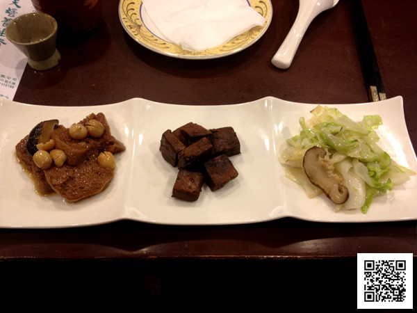 我點的是套餐,配菜就這三樣,滷的都很入味,有點太鹹。青菜是蠻新鮮的,但是覺得有點太油。(那個蓮子好吃,去籽)
